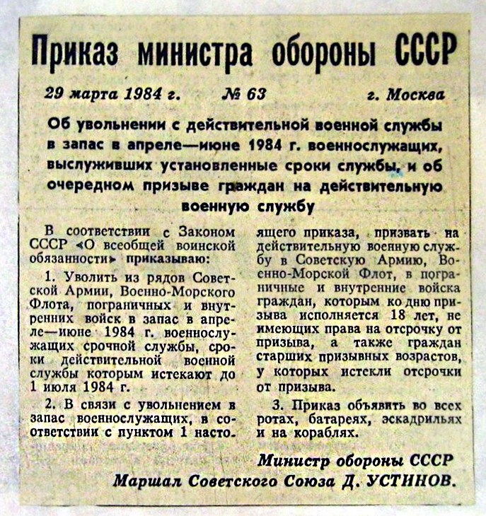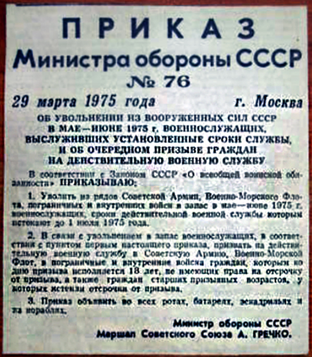 | В этой Теме вспоминаем о Приказах Министра Обороны СССР "Об увольнении в запас военнослужащих ... и об очередном призыве граждан"