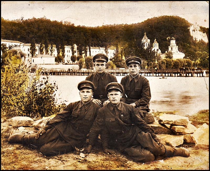 Фотография моего отца (первый ряд крайний с лева) на фоне Святогорской лавры — мужской монастырь Донецкой епархии 1937 год. --------------------------------------------------------------------
