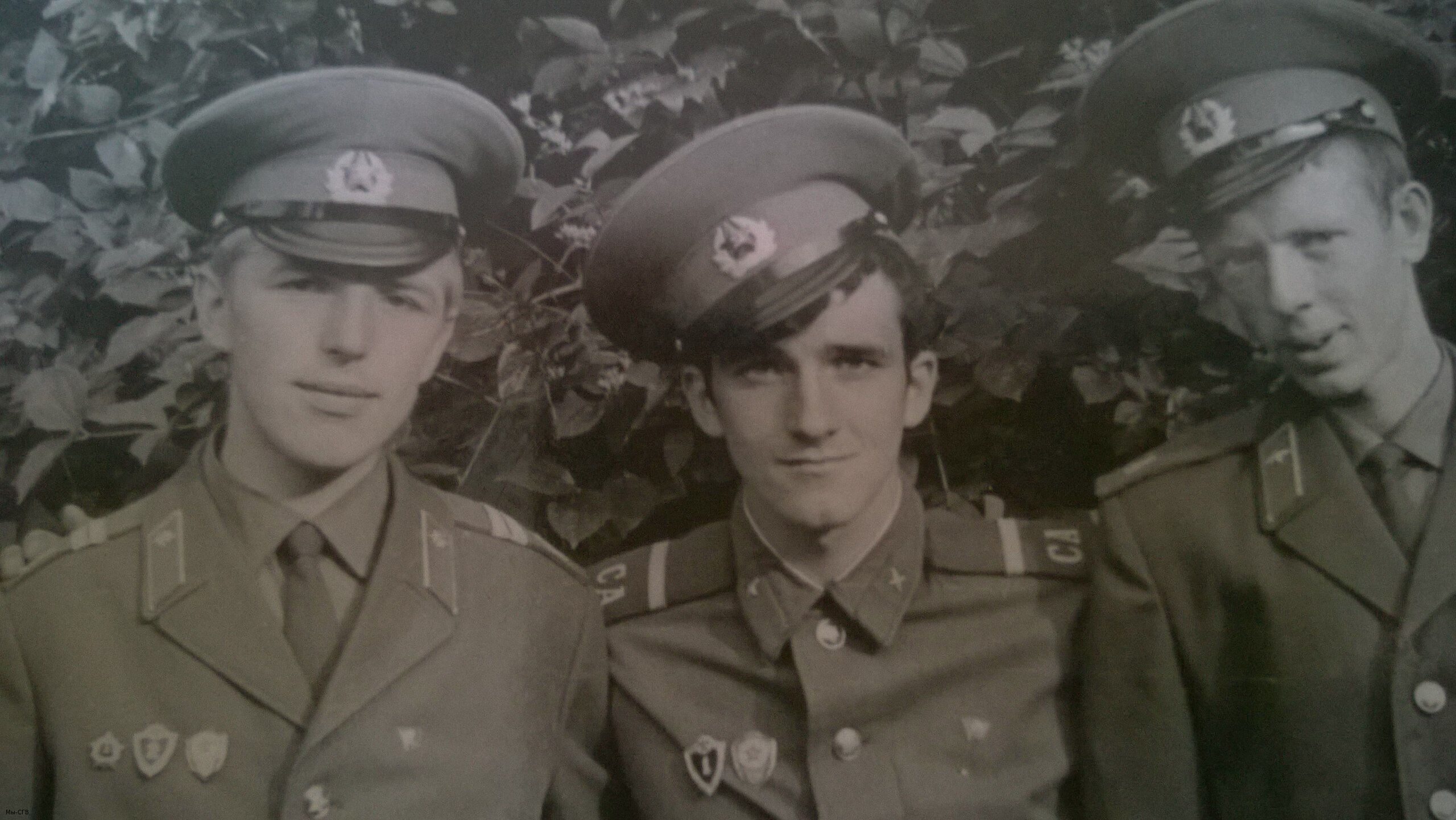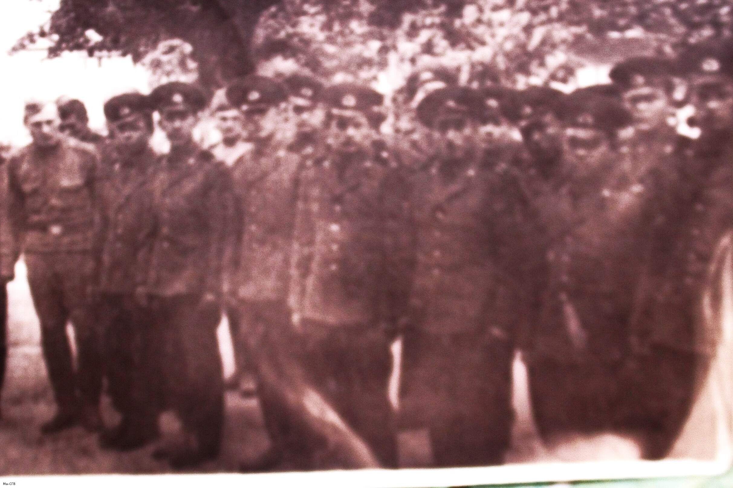 ТУТ Я ПО СЕРЕДИНЕ . В ПРАВУЮ СТОРОНУ ОТ МЕНЯ ЭТО МАСЛОВ АЛЕША ИЗ НОВГОРОДА , И В ПРАВУЮ СТОРОНУ ОТ МЕНЯ ЭТО МОЙ ЗЕМЛЯК: ЗОСИМ ГЕРРГИЙ . /// СГВ : Г. ЩЕЦИН . ИНЖИНЕРНО- САПЕРНЫЙ БОТАЛЬОН В ПОНТОННОЙ РОТЕ . П/П- 15258--п. В ГОДАХ 1981-1983 .