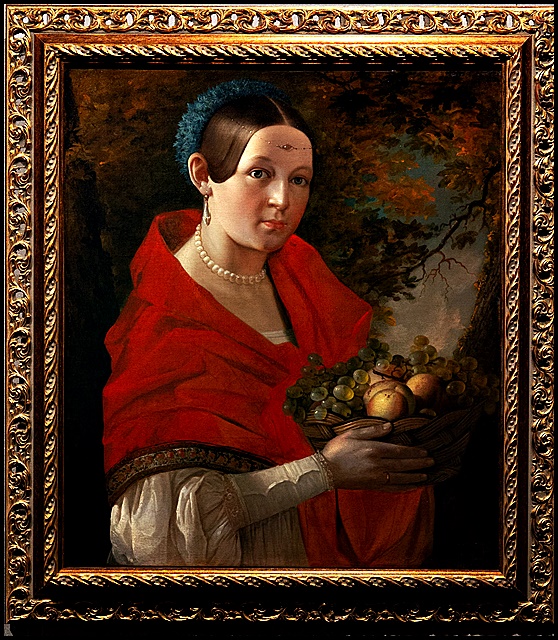 Девушка на картине Хруцкого стала культовой на его родине, в Беларуси, попав на банкноты, монеты и граффити. Черноволосую собирательницу фруктов художник писал множество раз практически в одинаковой позе. Плечи ее всегда укрыты красной шалью, подбитой узорчатой каймой. Этот образ легко узнают те, кто знаком с творчеством Карла Брюллова: он, после триумфального возвращения в Россию, ввел моду на подобные жанры.