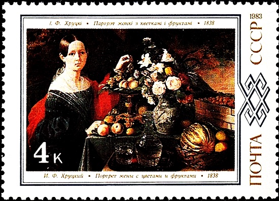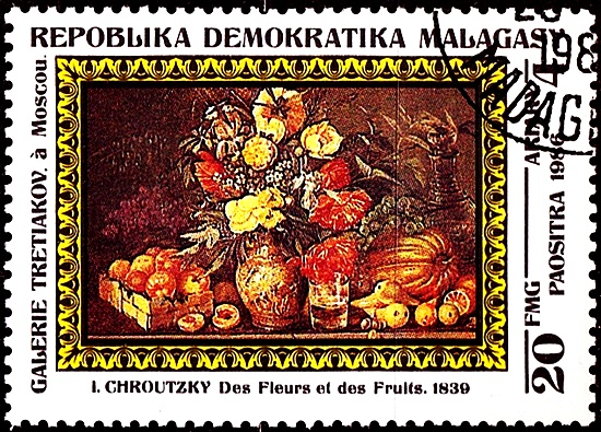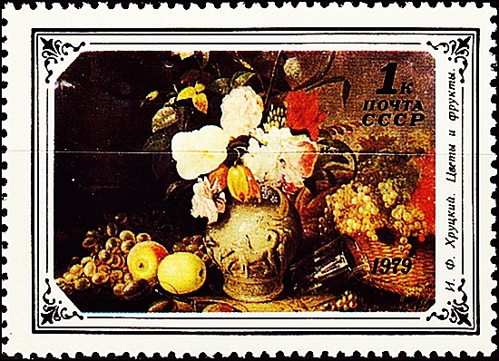 Почтовая марка СССР. И. Ф. Хруцкий «Цветы и фрукты» (1839), 1979