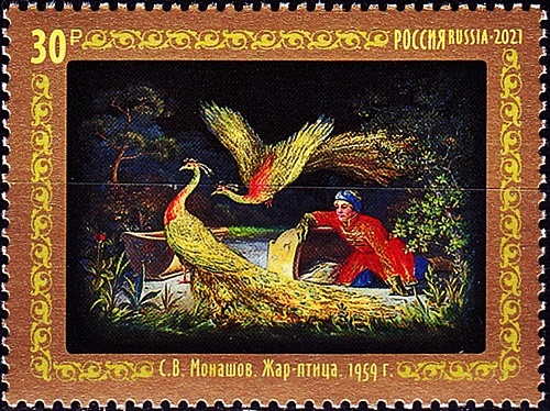 На марке изображена скульптура «Магнолия» (1930-е), на полях блока — портрет С.Т. Конёнкова на фоне интерьера Мемориального музея «Творческая мастерская С.Т. Конёнкова» МВО РАХ.