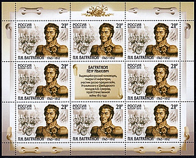 | 1812 г. День памяти. Петр Иванович БАГРАТИОН (12?.6?.1765 — 1812), князь, полководец. Лучший суворовский ученик скончался от ран, полученных на Бородинском поле.