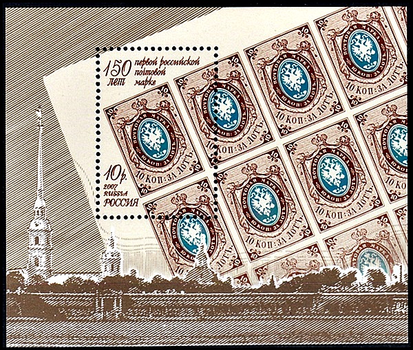 Первая российская почтовая марка поступила в обращение под Новый год, к 1 января (по новому стилю это 13 января) 1858 года. Она была маленькая – всего 2 х 2,7 сантиметра, ничем не примечательная, коричневого цвета с синим овальным центром, без зубцов.