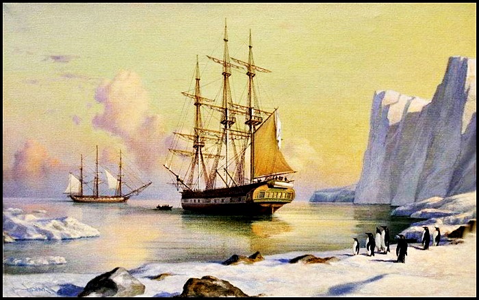 | 16 января 1820 года Беллинсгаузен и Лазарев подходят к берегам Антарктиды и открывают последний материк нашей планеты