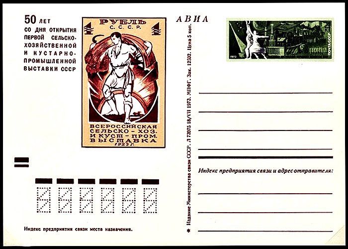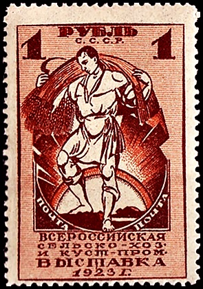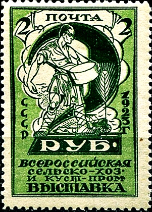 В августе 1923 года были выпущены первые почтовые марки СССР. Они были посвящены Первой Всероссийской сельскохозяйственной и кустарно-промышленной выставке.