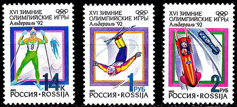 14 января 1992 года в почтовое обращение поступили первые марки Российской Федерации, посвященные зимним Олимпийским играм в Альбервиле.