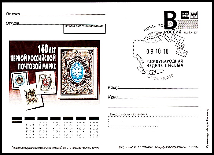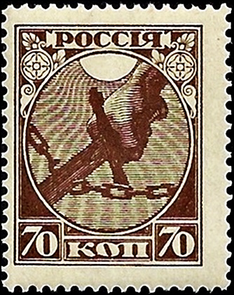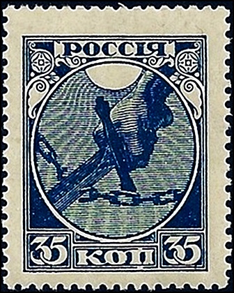 В 1918 году, к первой годовщине Октябрьской революции, были выпущены почтовые марки Советской России. Первые революционные марки стоили 35 копеек (синяя) и 70 копеек (коричневая). Выпустили их всего несколько экземпляров, потому что вскоре вышел указ с 1 января 1919 года пересылать простые письма и открытки бесплатно, за счет государства. Этот указ действовал до 15 августа 1921 года.
