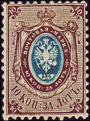 (10) 22 декабря 1857 года Почтовый департамент Российской империи издал циркуляр «О введении почтовых марок для всеобщего пользования», начиная с нового года. Первая российская марка стоила 10 копеек, тираж её составил три миллиона экземпляров.
