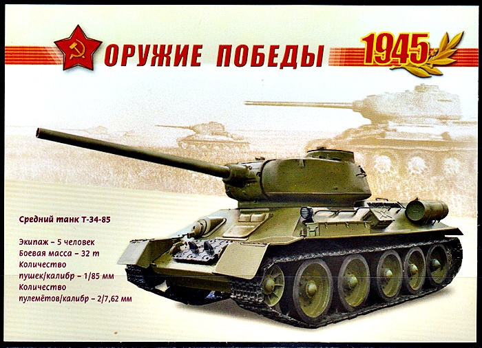 Т-34-85 стал танком Победы, вынес на себе основную тяжесть боев и длинных маршей завершающего периода войны. Легендарной в то время стала надежность и ремонтопригодность машины (часто чинили «на коленке»).